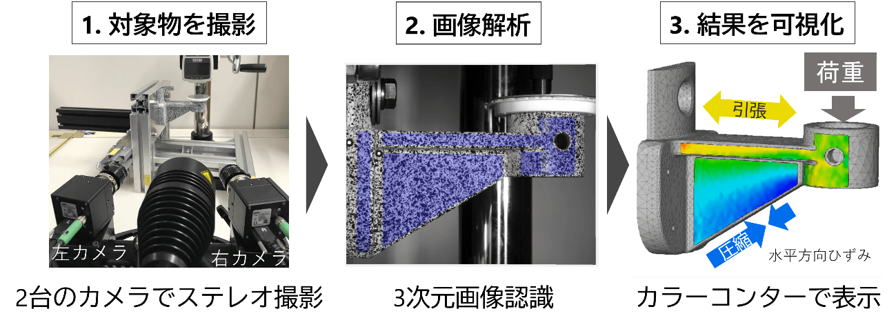 昨年から本コラムでも数回にわたりご紹介している、対象の変位やひずみを非接触・3次元・面的に取得可能な、デジタル画像相関法(DIC)ソリューション。これまでのコラムや事例紹介(https://dic.kke.co.jp/case/)では、対象にランダムなパターン模様を塗布して行う面的な計測技術やその応用例をご紹介致しました。