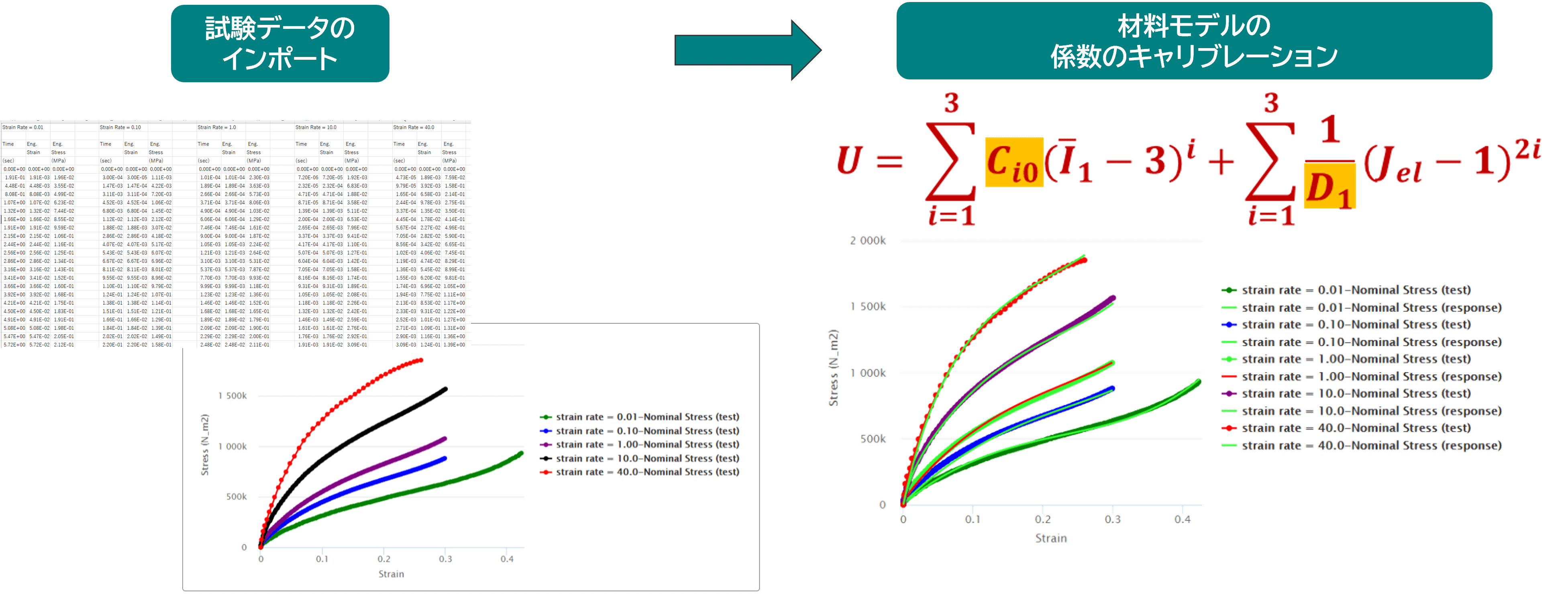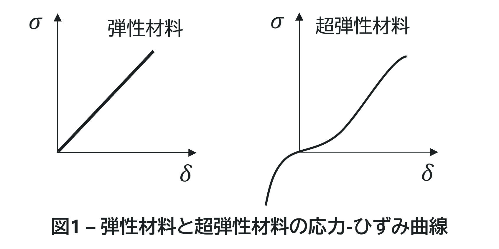 超弾性材料の挙動は単一のヤング係数で捉えることができません。