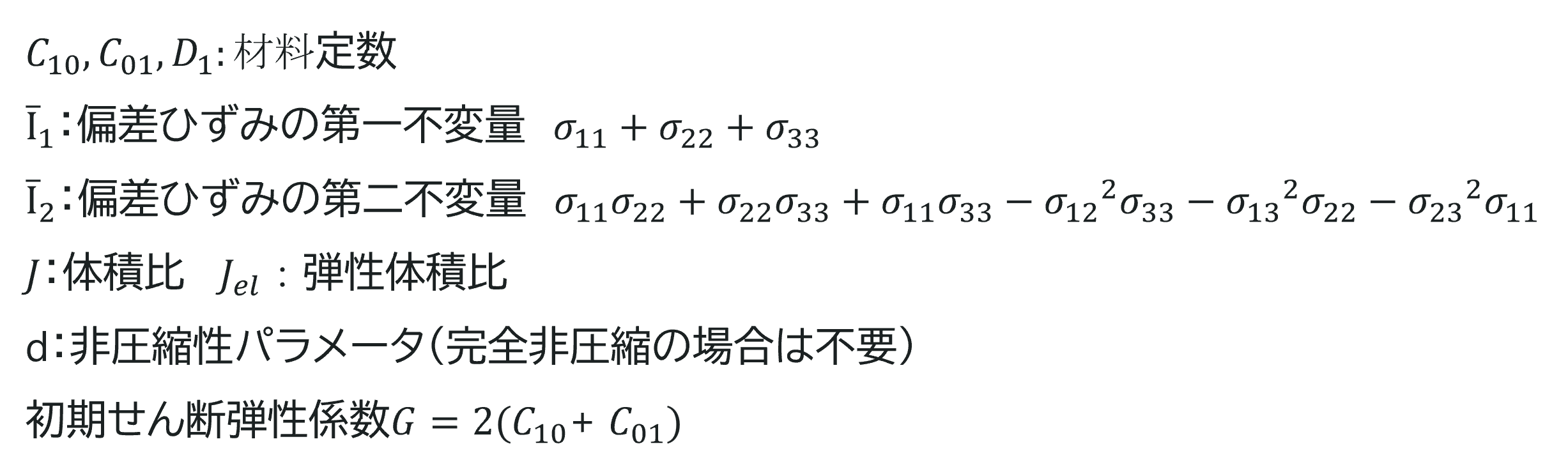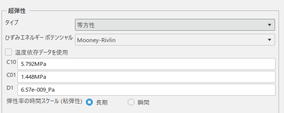 また、超弾性材料はデフォルトでは非圧縮として定義されており、ハイブリッド要素の使用が必須です。