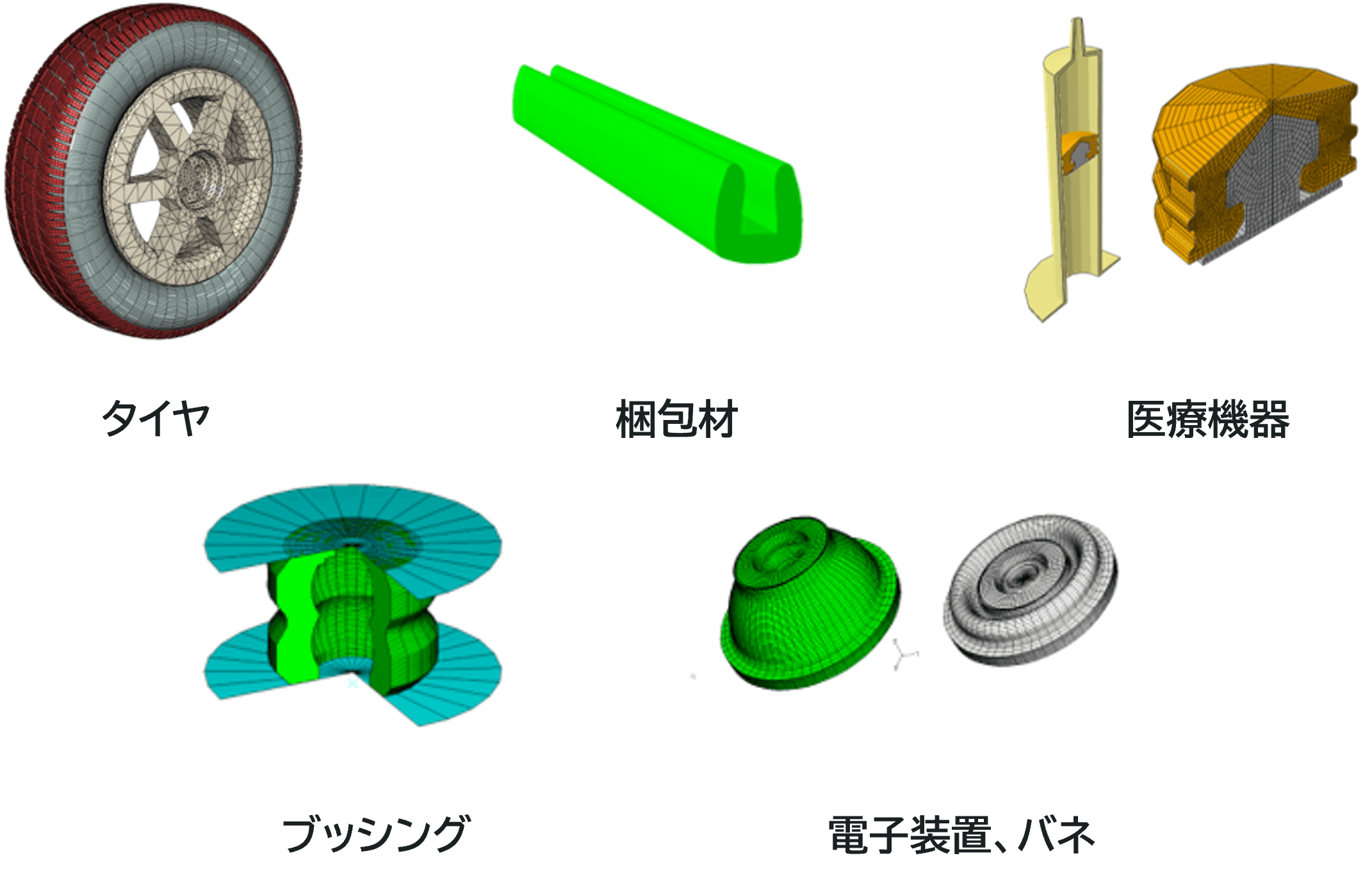 超弾性材料はソリッドゴムなどの挙動をシミュレートするために使用されます。