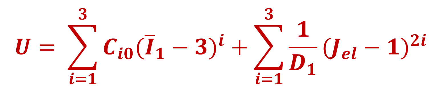 超弾性材料の構成式は、総応力-総ひずみの関係で定義されます。