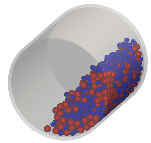 回転速度30rpmでの粉体挙動をシミュレーションし、可視化します。
