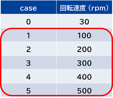 Case1~5までの結果です。400pmになると粒子にかかる重力よりも遠心力の方が大きくなり、粒子が壁に張り付いている様子が見られました。