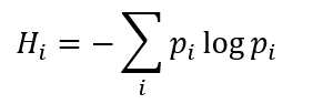 2. 各セルの成分比 {p_i } から局所シャノンエントロピーH_iを算出