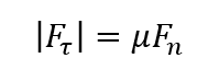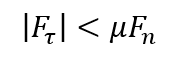 接触面における接線方向の力Fτを、法線方向の力(接触圧力)Fnを、摩擦係数をμとすると、以下のような条件式で表されます。