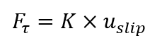 摩擦力は、仮想的な固着剛性(バネ定数)Kと相対変位 uslipに比例します。
