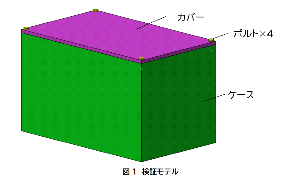 今回は、箱と蓋をボルトで締め付けた、下図のようなモデルを例に検証を行います。