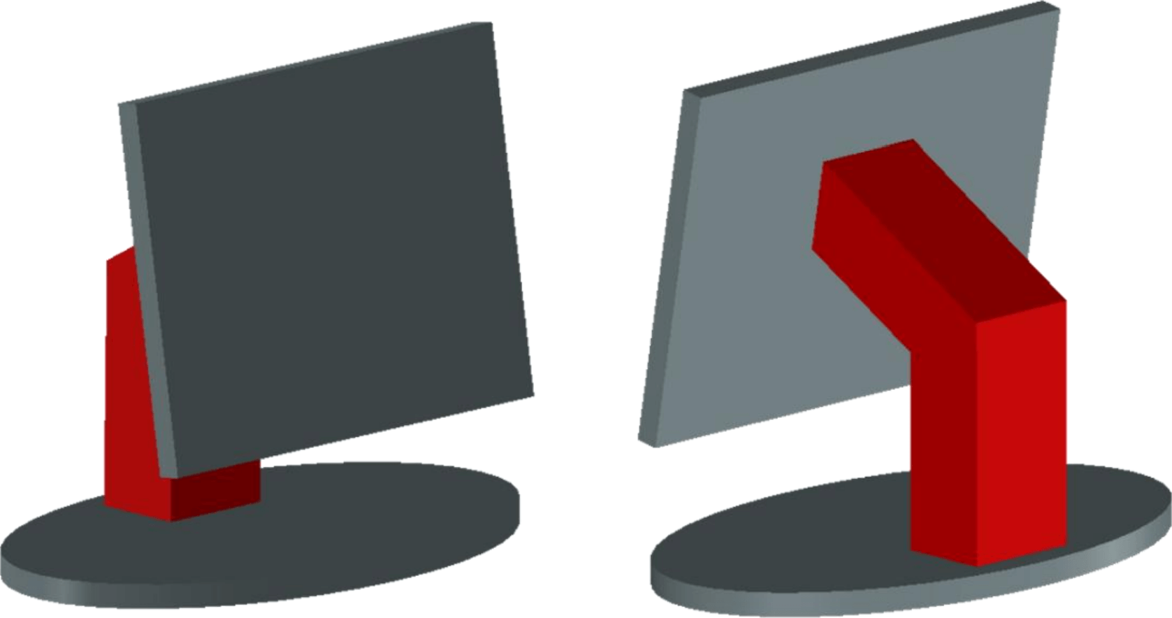 固有振動数の最大化の最適化目的を設定しない場合、1次モード(最も起こりやすい変形パターン)の固有振動数が30.5Hzとなる形状が得られました。この変形モードのアニメーションを確認したところ、正面から見てモニターが時計回り・反時計回りに前後に回転する(ねじれる)ような動きをしていることがわかりました。