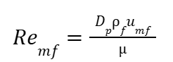 ここで、Dは粒径を示します。これらの式を使うと最小流動化速度を求めることができます。