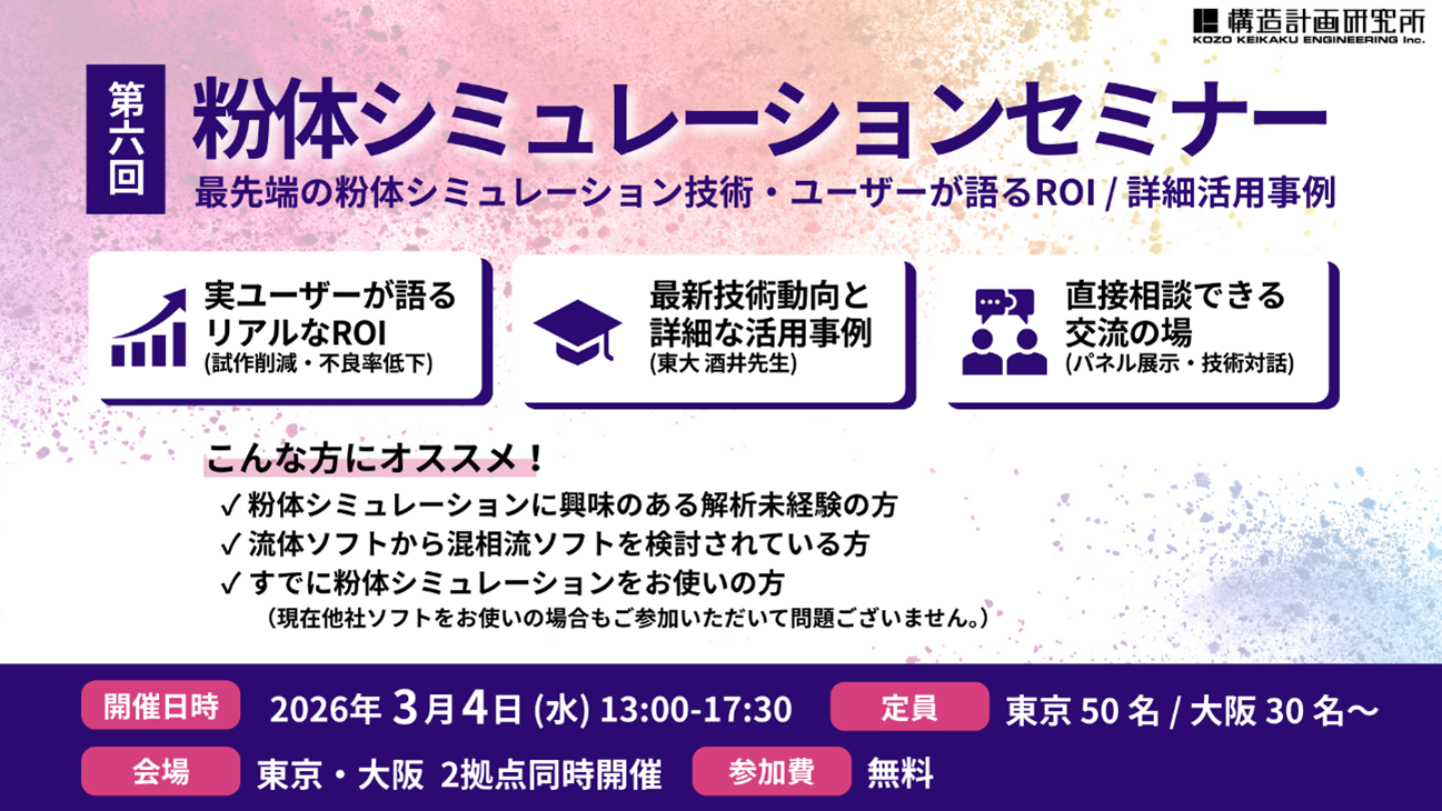第6回粉体シミュレーションセミナー最先端の粉体シミュレーション技術・ユーザーが語るROI/詳細